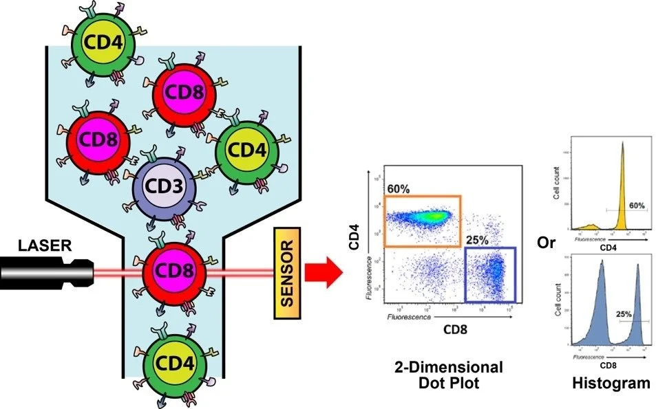It utilizes an advanced proprietary flow cytometry method, which combines cutting-edge laser technology with monoclonal antibodies, to precisely measure the properties of living cells such as size, shape, density and granularity which results in a precise count of various lymphocyte subpopulations.